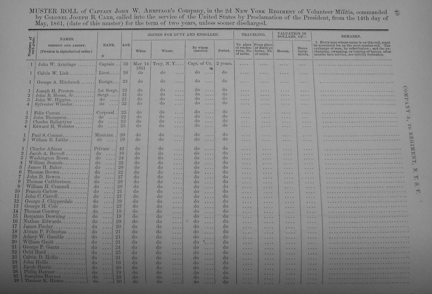 - Company A - Captain John W. Armitage - Page [ 1 ] [ 2 ]