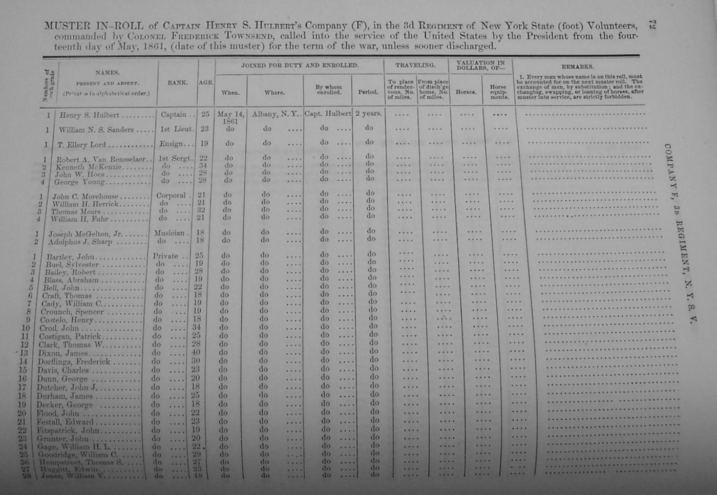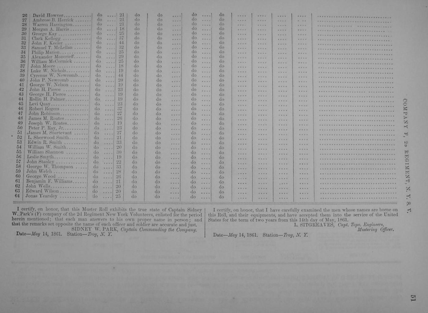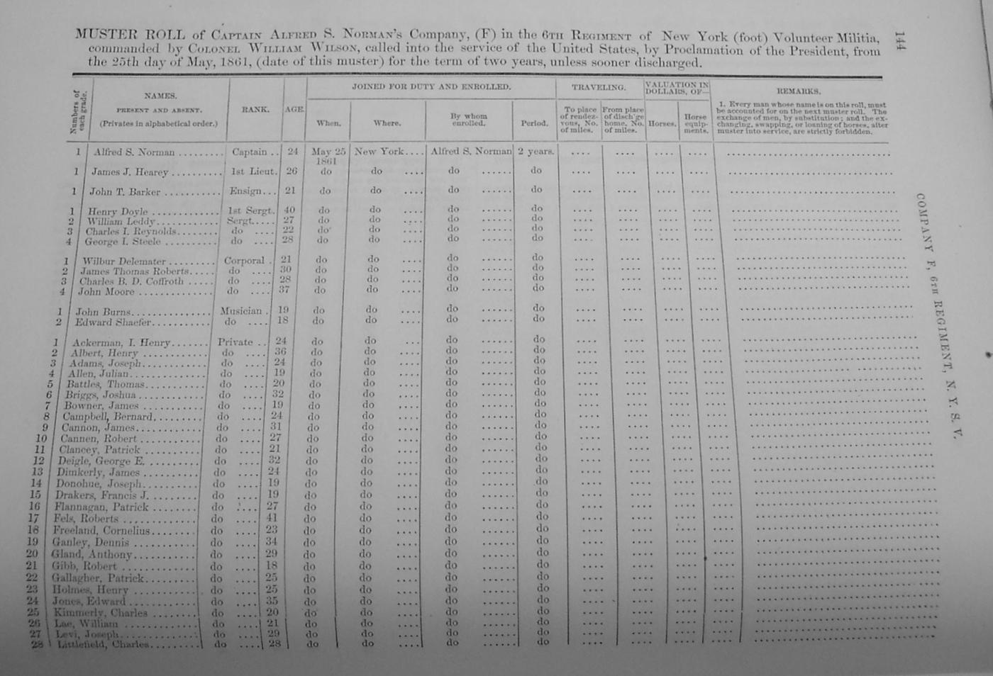 - Company F - Captain Henry A. Swartwout - Page [ 1 ] [ 2 ]