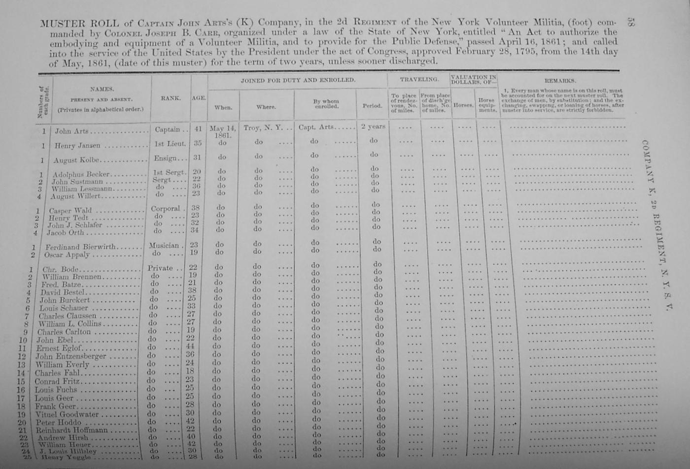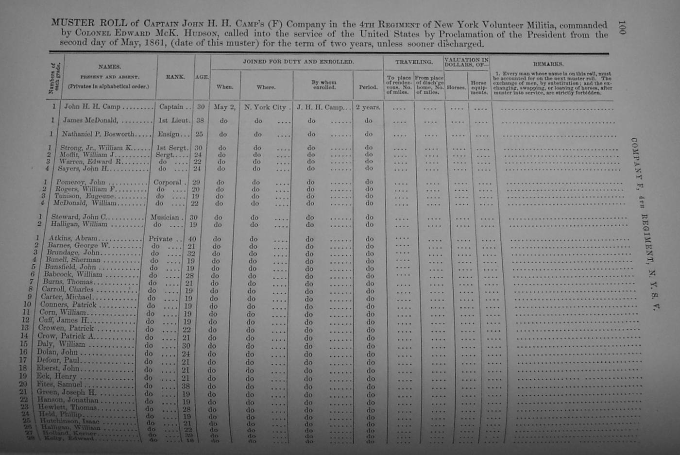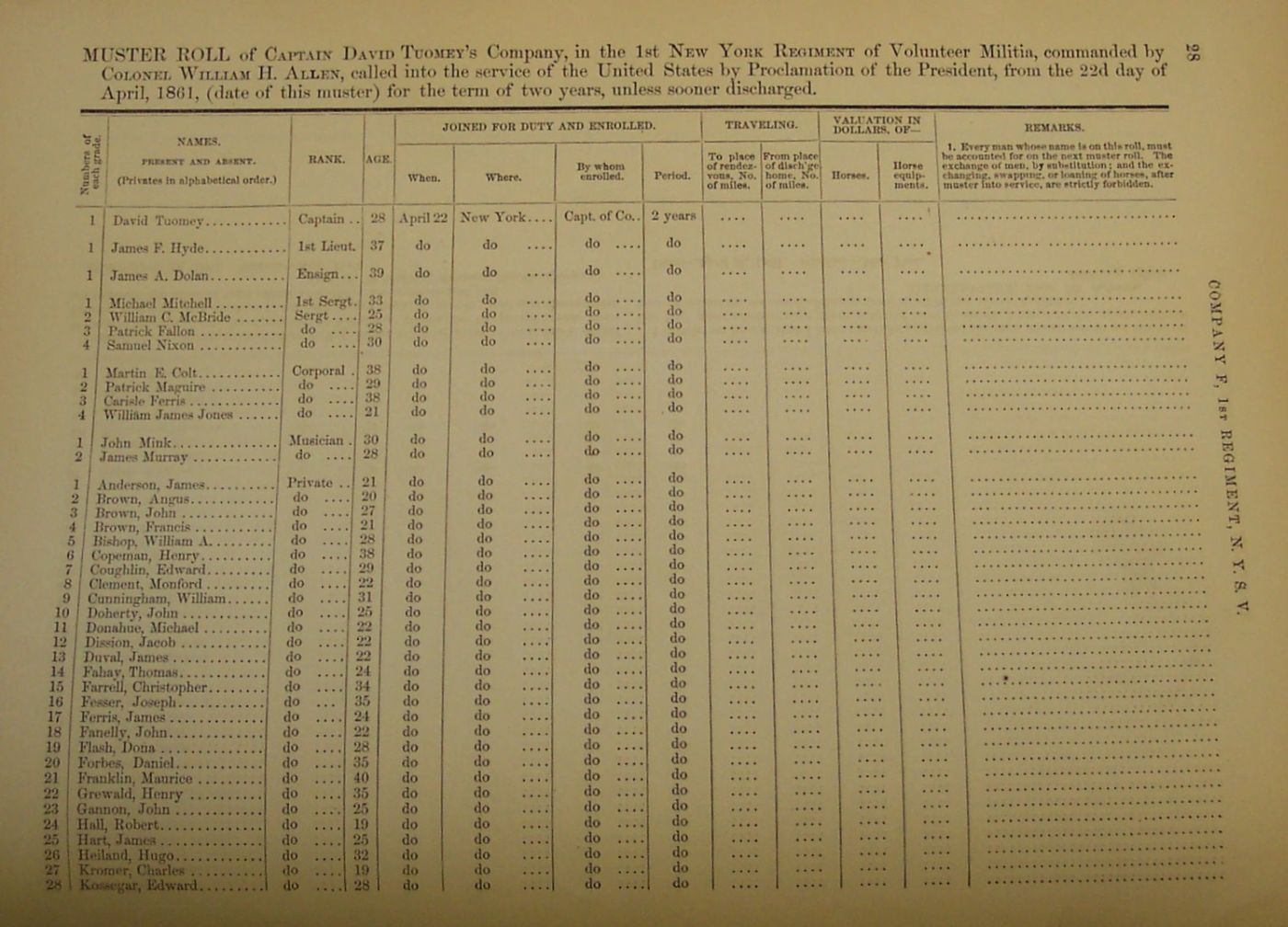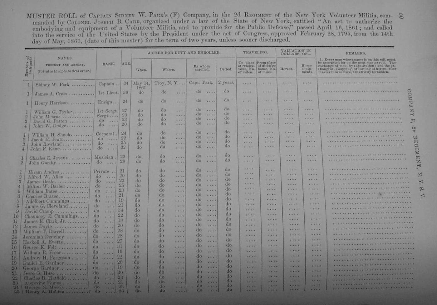 - Company F - Captain Henry A. Swartwout - Page [ 1 ] [ 2 ]