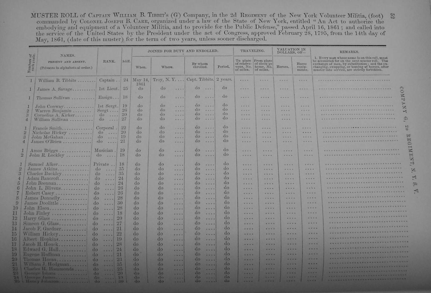 - Company G - Captain William W. Tibbit - Page [ 1 ] [ 2 ]