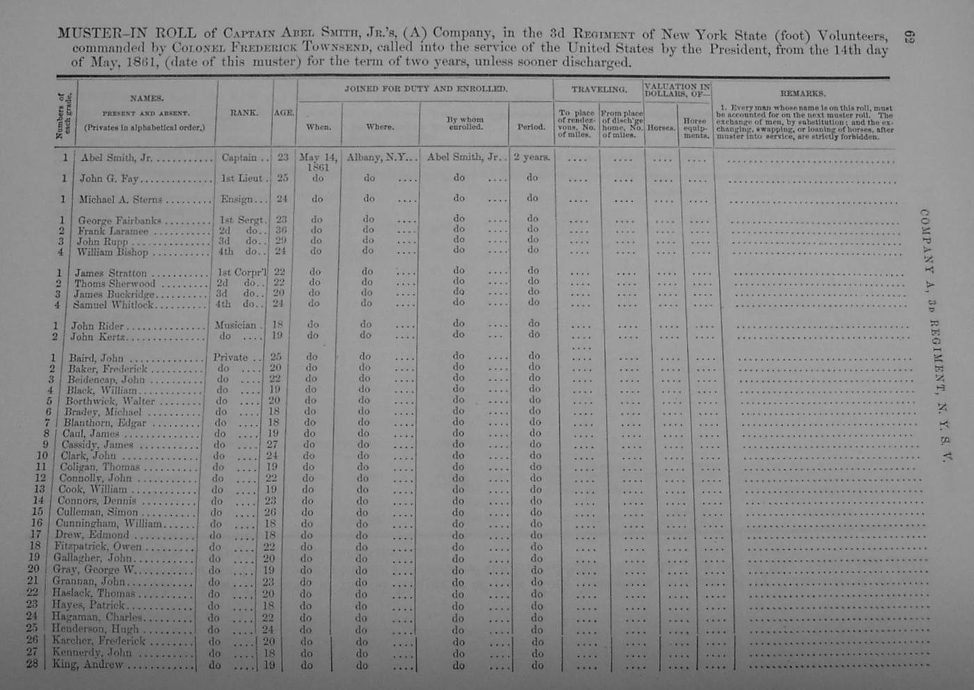 - Company A - Captain Abel Smith, Jr. - Page [ 1 ] [ 2 ]
