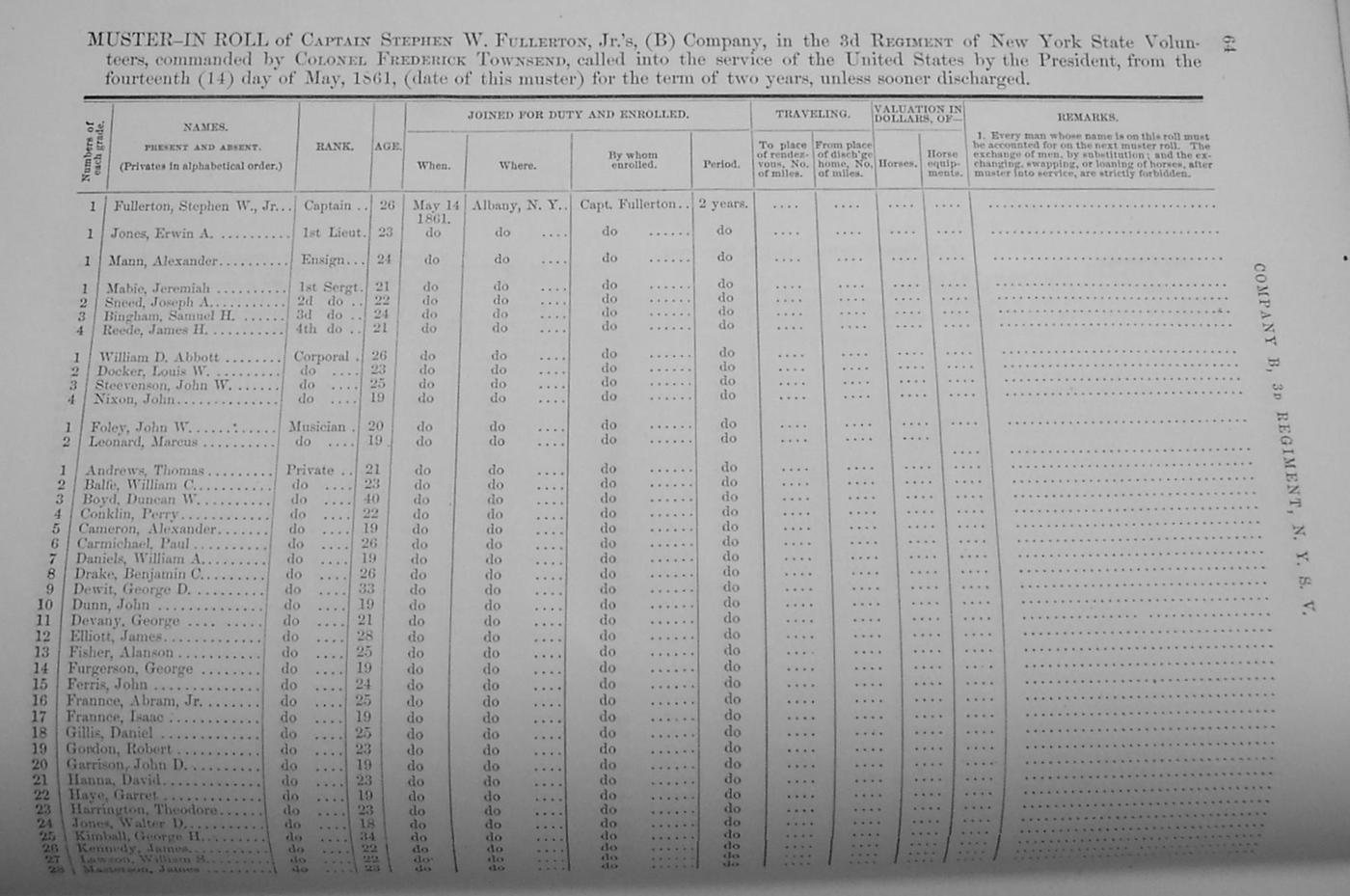 - Company B - Captain Stephen W. Fullerton, Jr. - Page [ 1 ] [ 2 ]