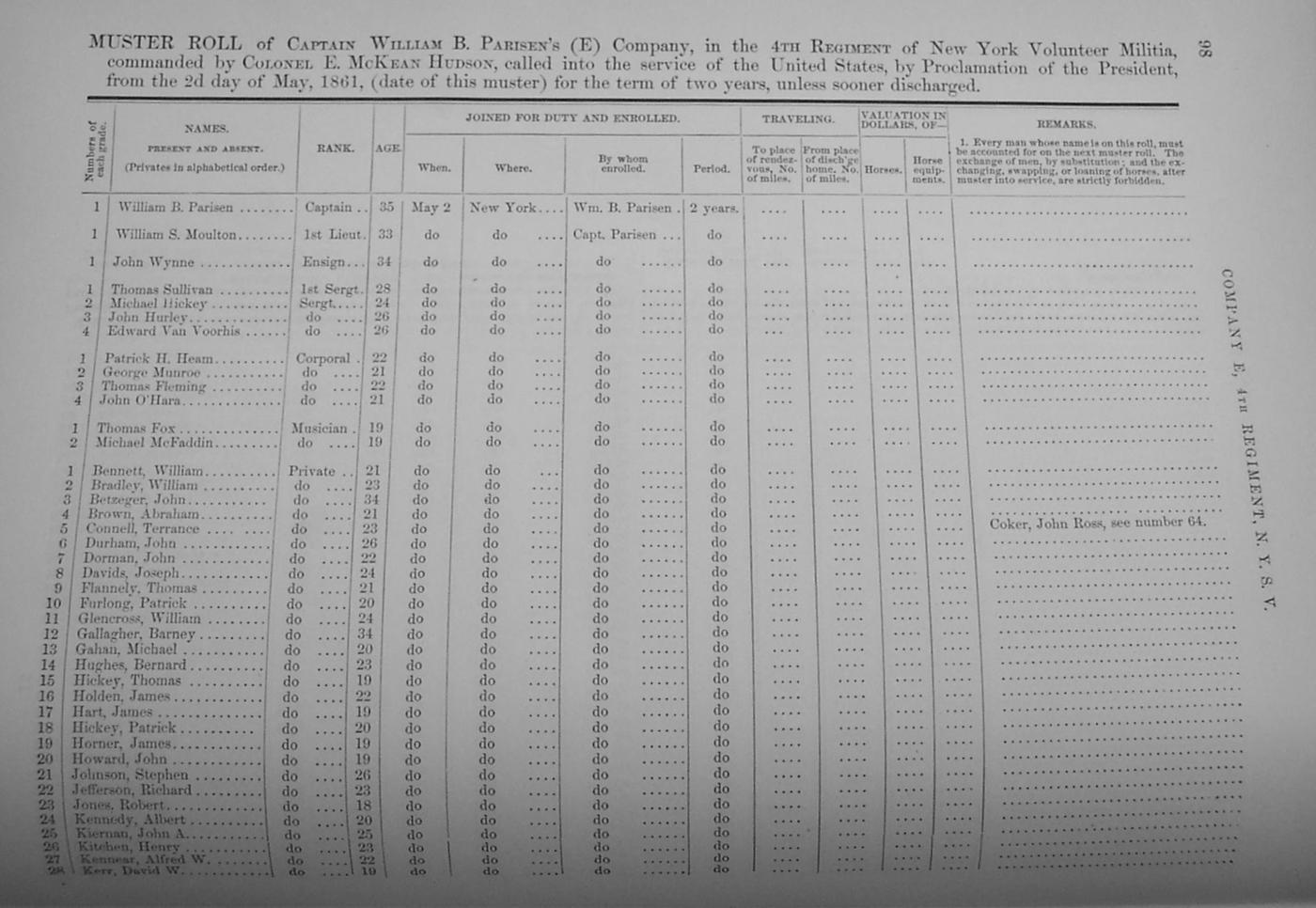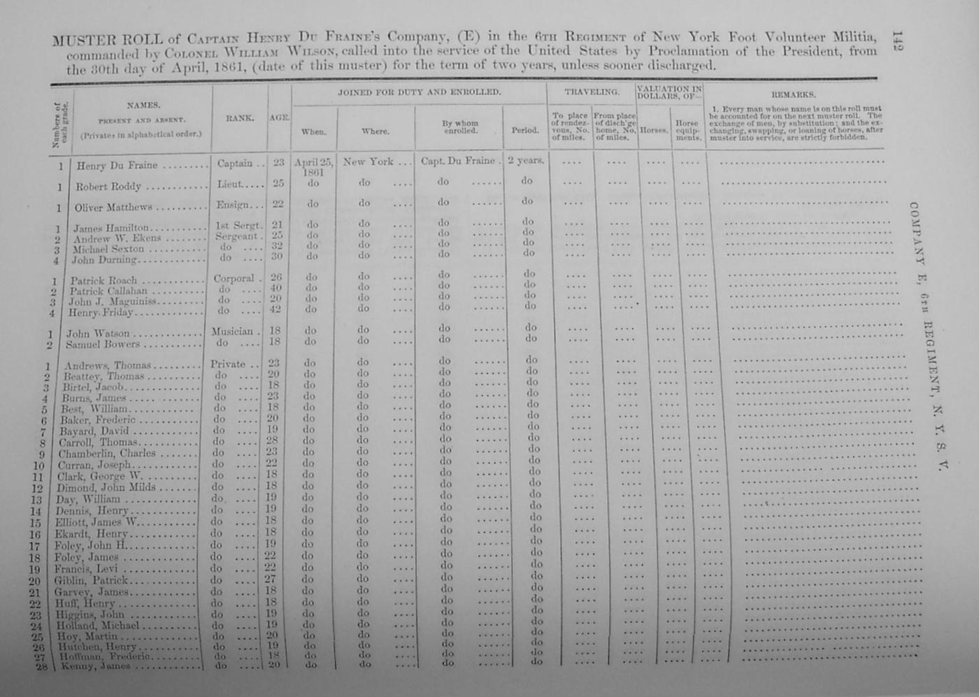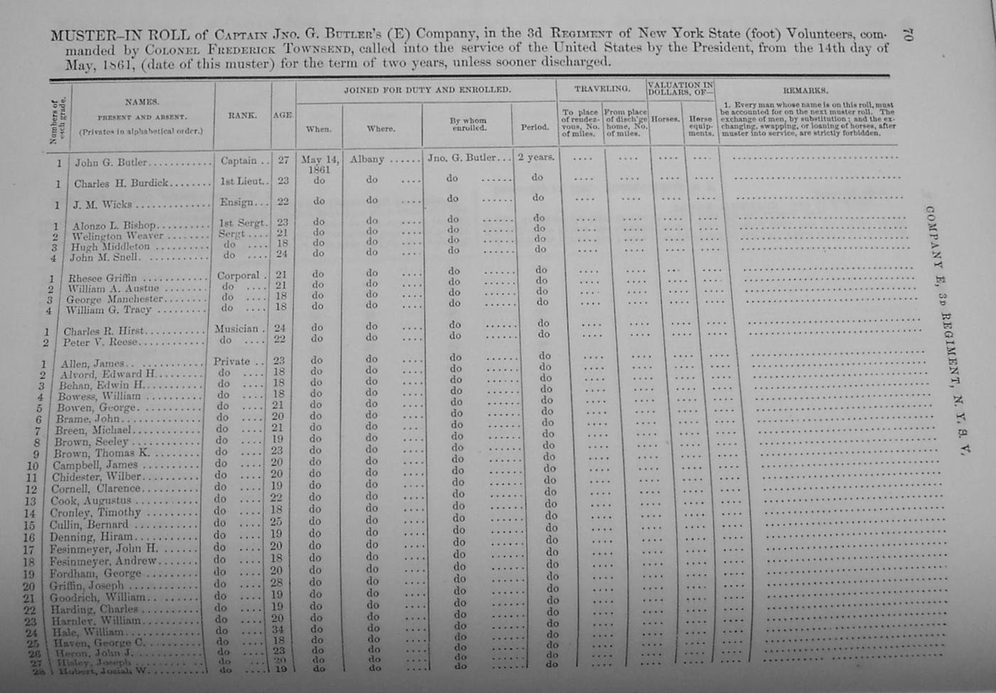 - Company E - Captain Hiram Duryea - Page [ 1 ] [ 2 ]