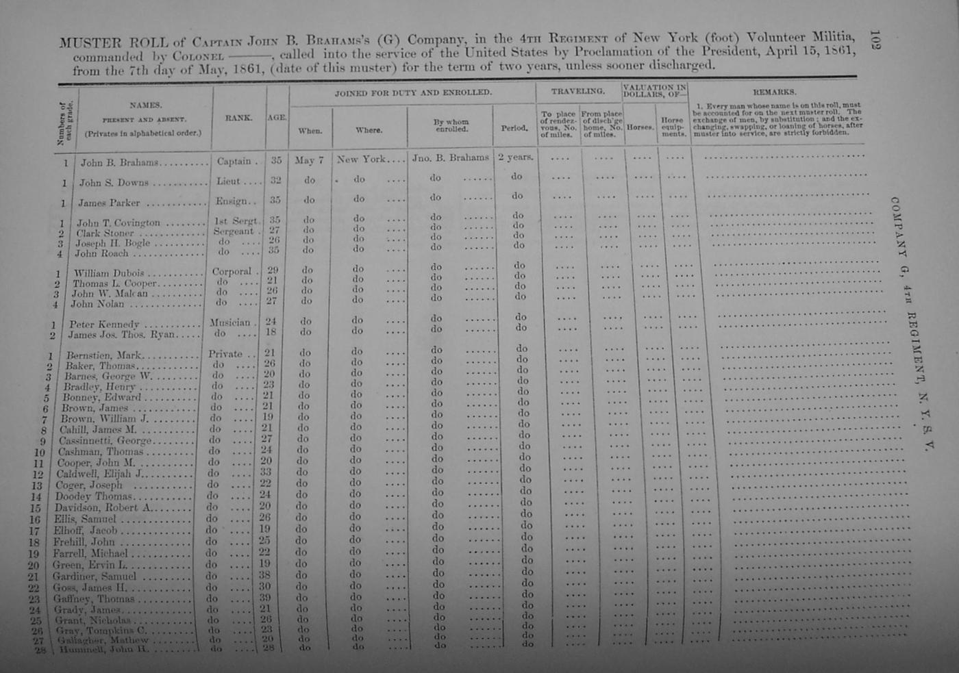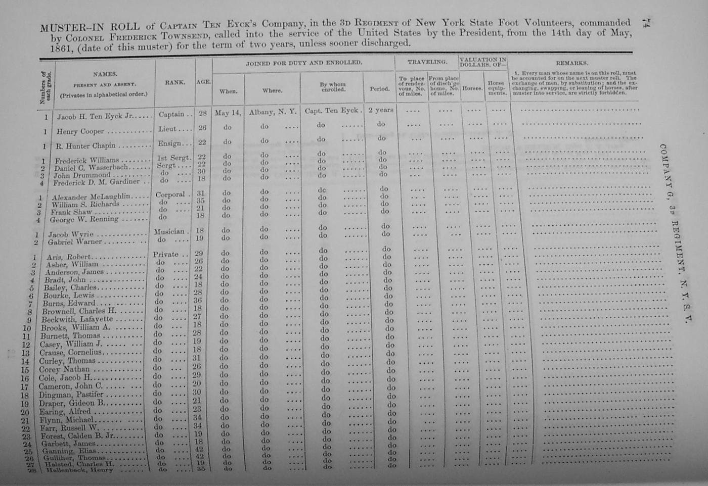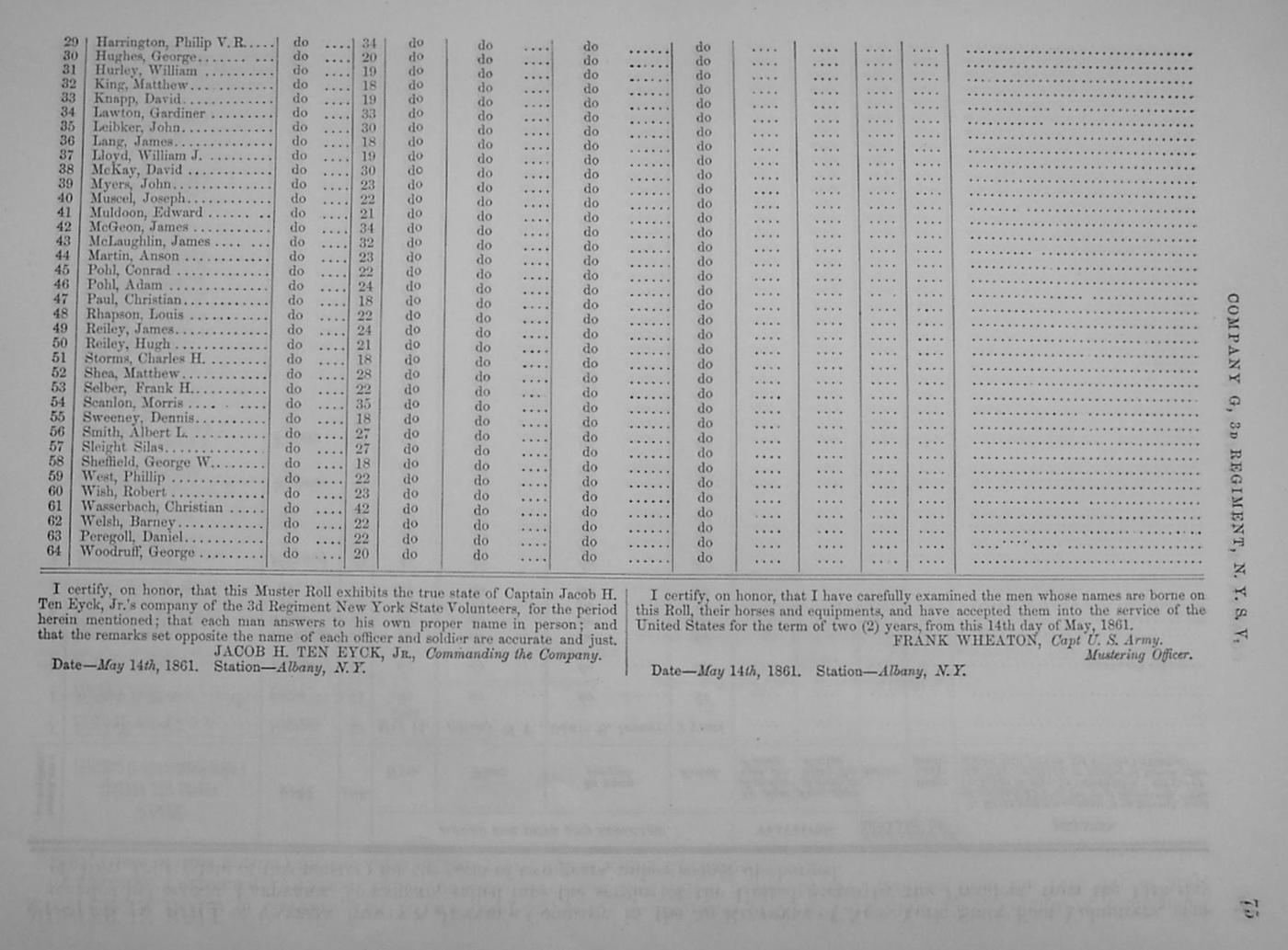 - Company G - Captain Ten Eyck - Page [ 1 ] [ 2 ]