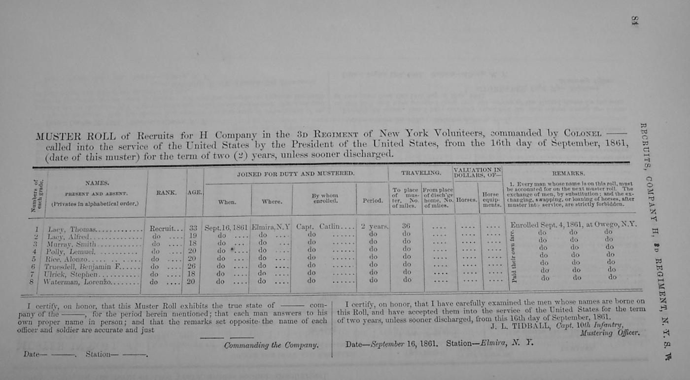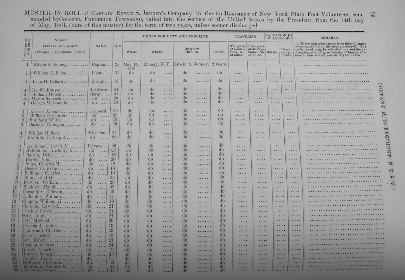 - Company H - Captain Edwin S. Jenny - Page [ 1 ] [ 2 ]