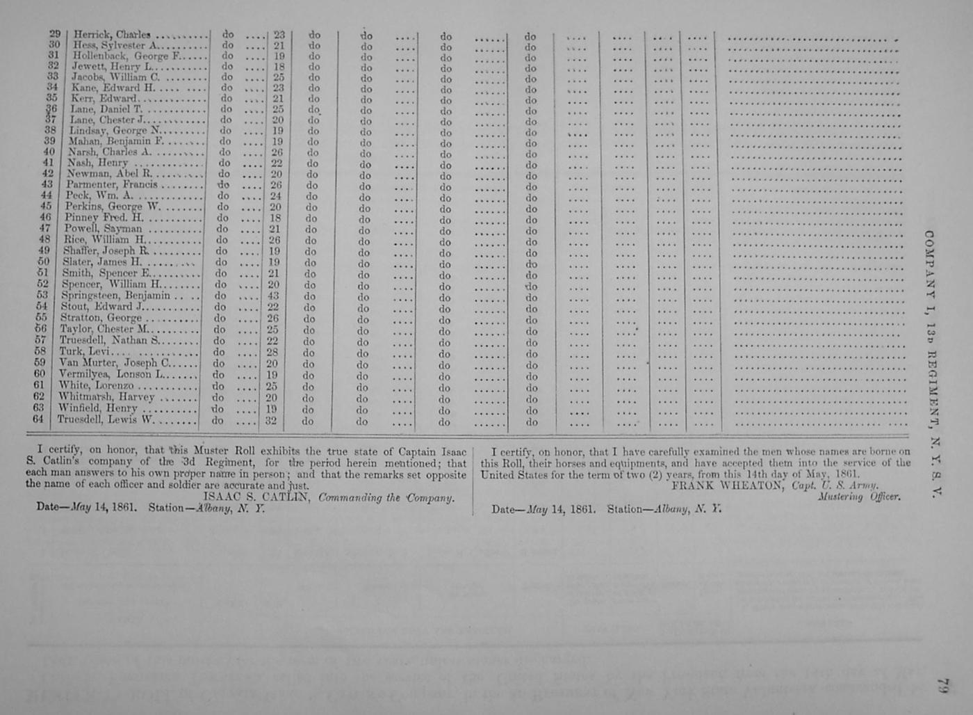 - Company I - Captain Isaac S. Catlin - Page [ 1 ] [ 2 ]