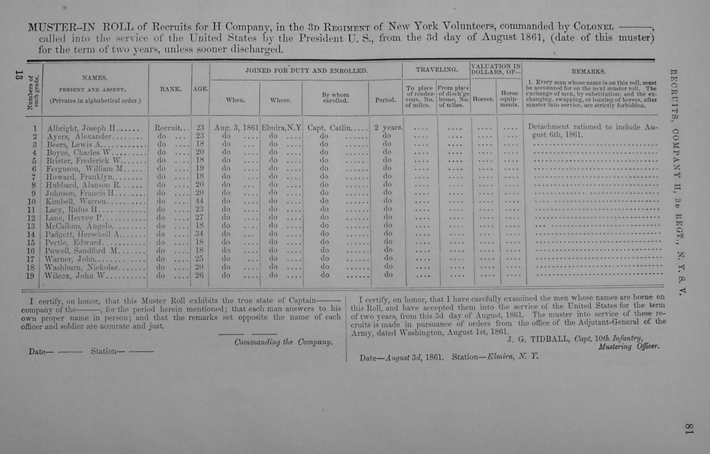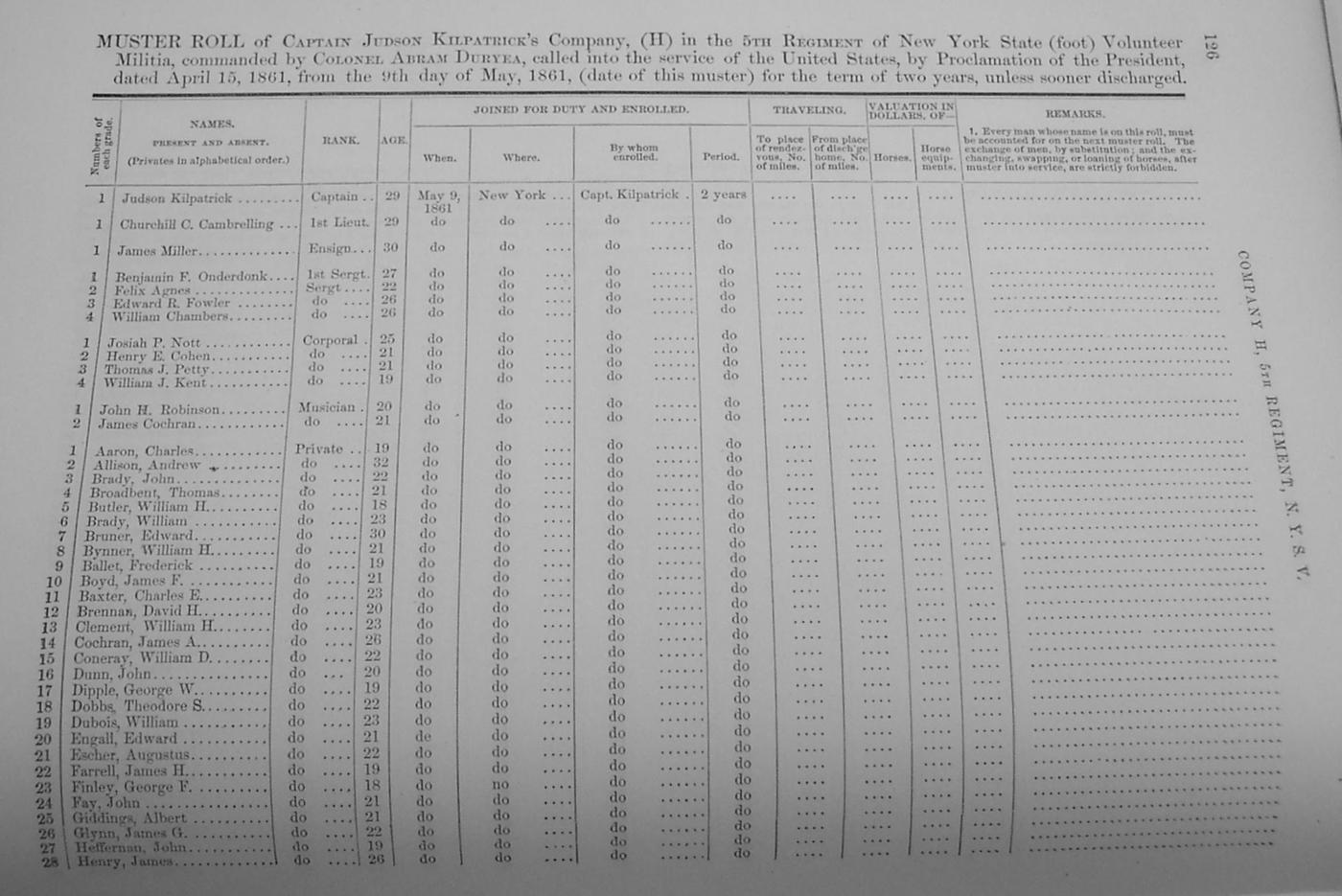- Company H - Captain Judson Kilpatrick - Page [ 1 ] [ 2 ]