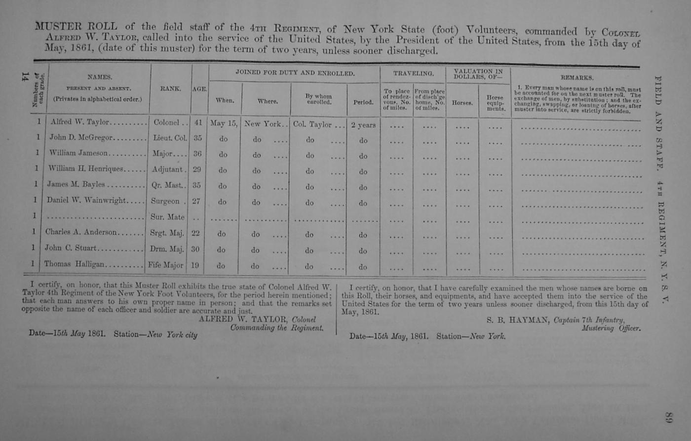 4th Regiment of New York Foot Volunteer Militia - Colonel Alfred W. Taylor