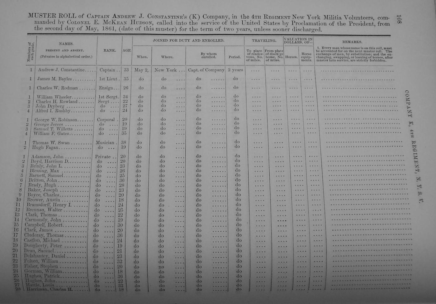 - Company K - Captain Andrew J. Constantine - Page [ 1 ] [ 2 ]