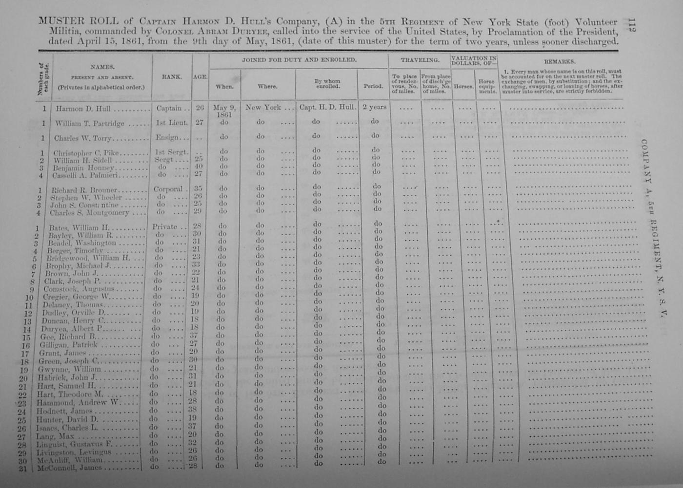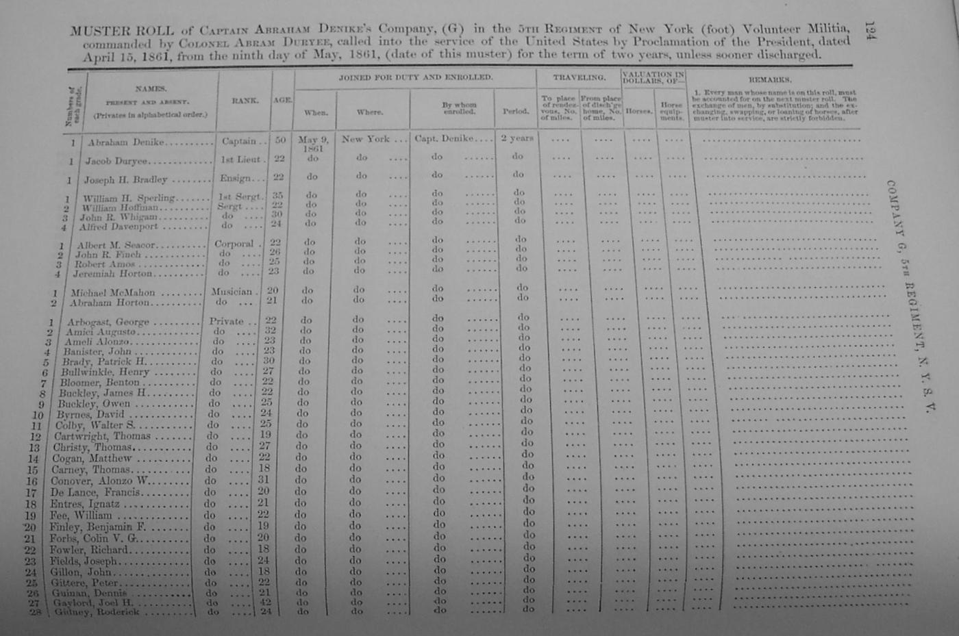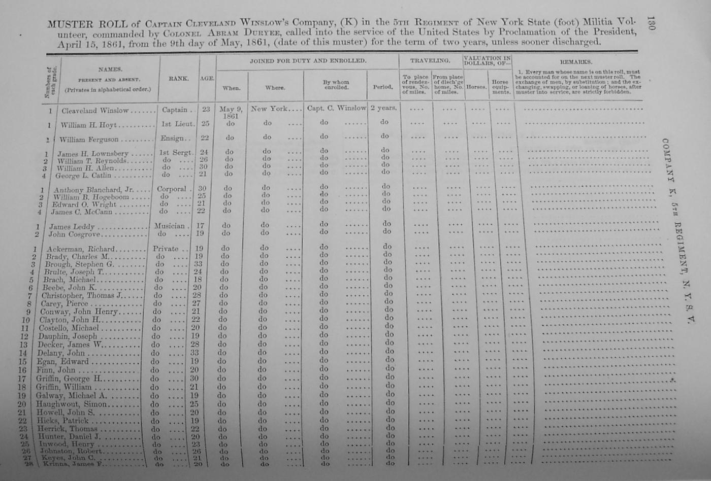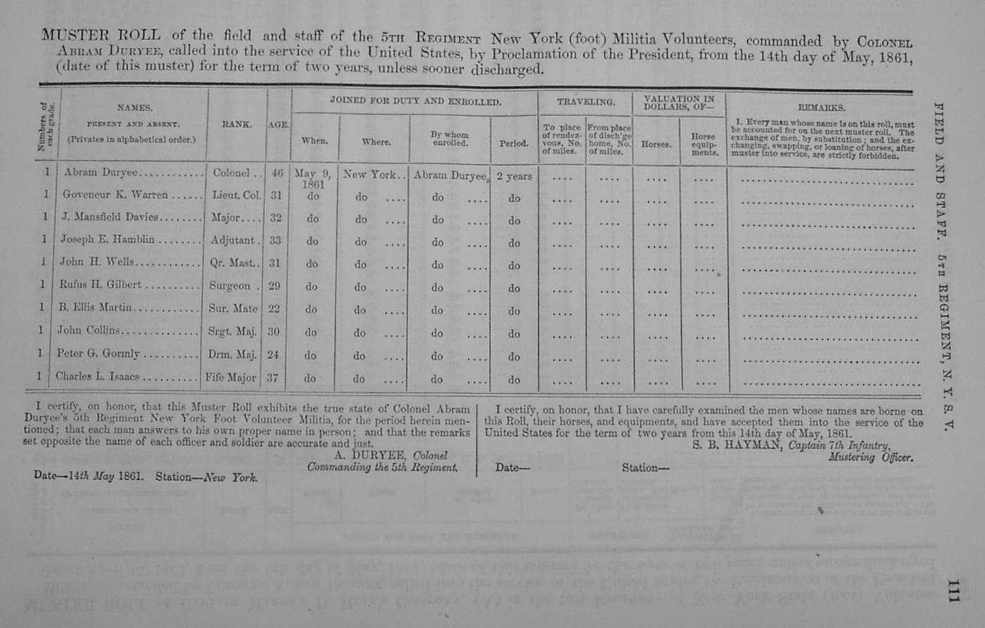 5th Regiment of New York Foot Volunteer Militia - Colonel Abram Duryee