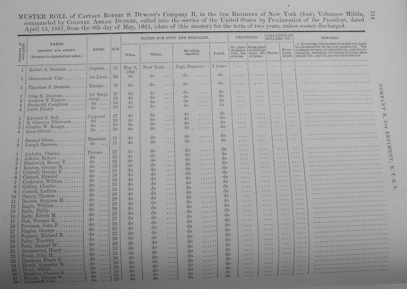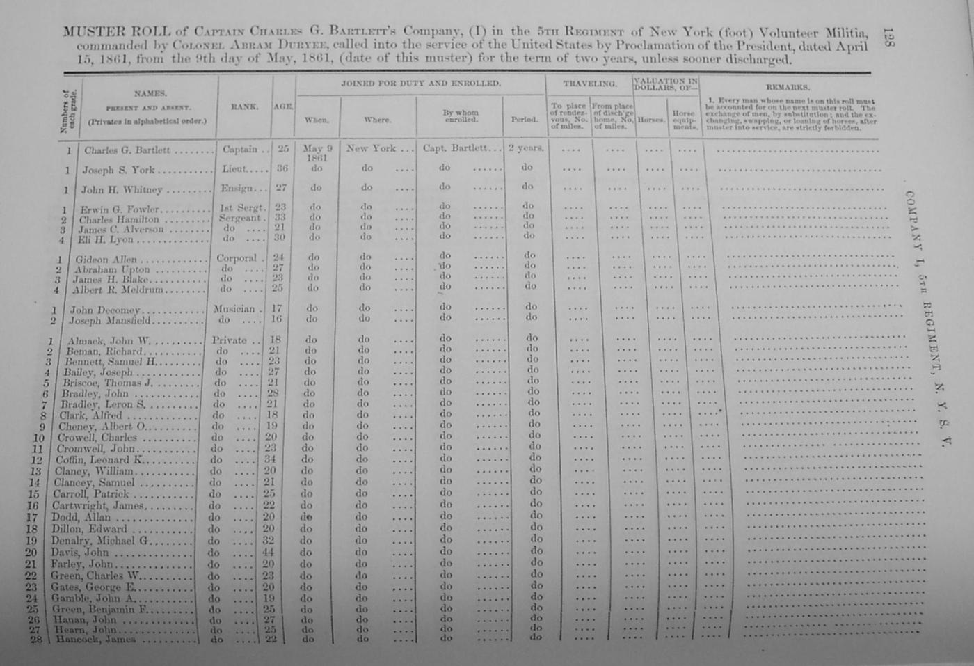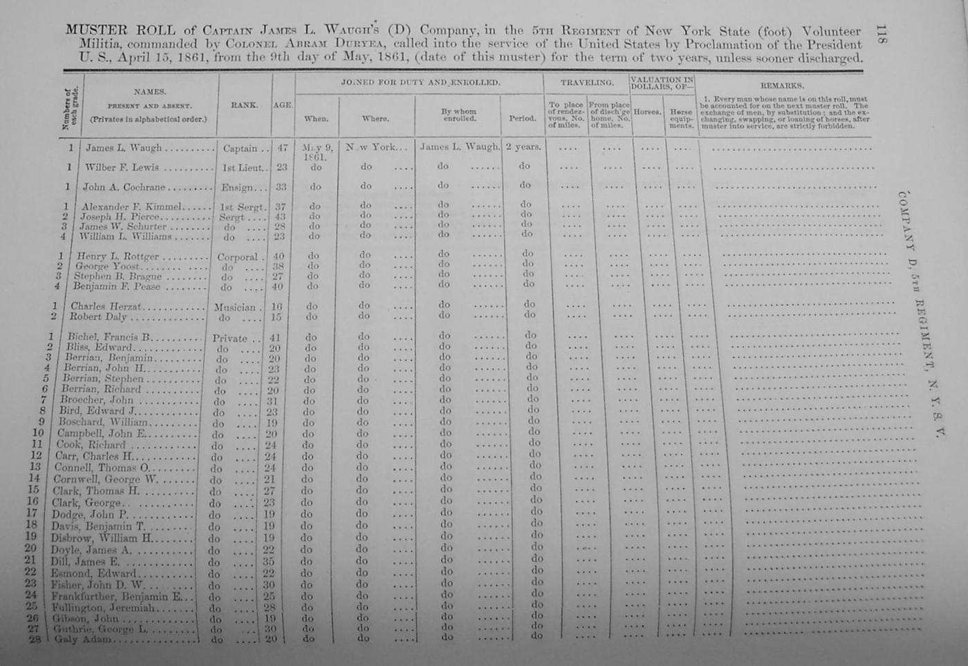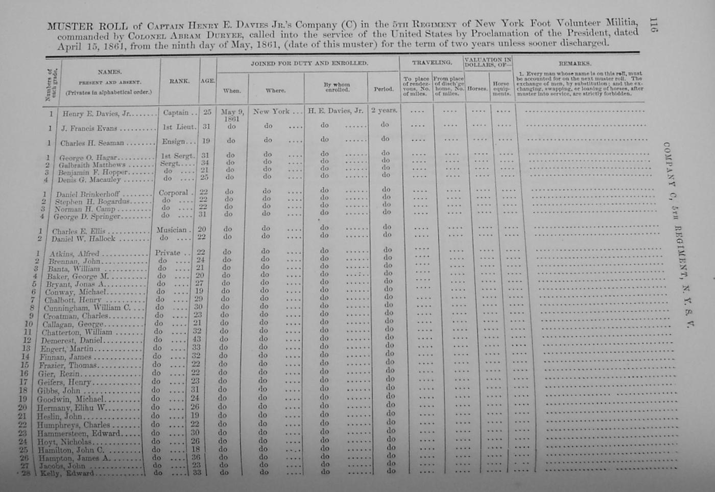5th Regiment of New York Foot Volunteer Militia - Colonel Abram Duryee