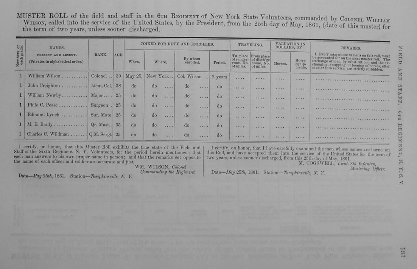 6th Regiment of New York Foot Volunteer Militia - Colonel William Wilson