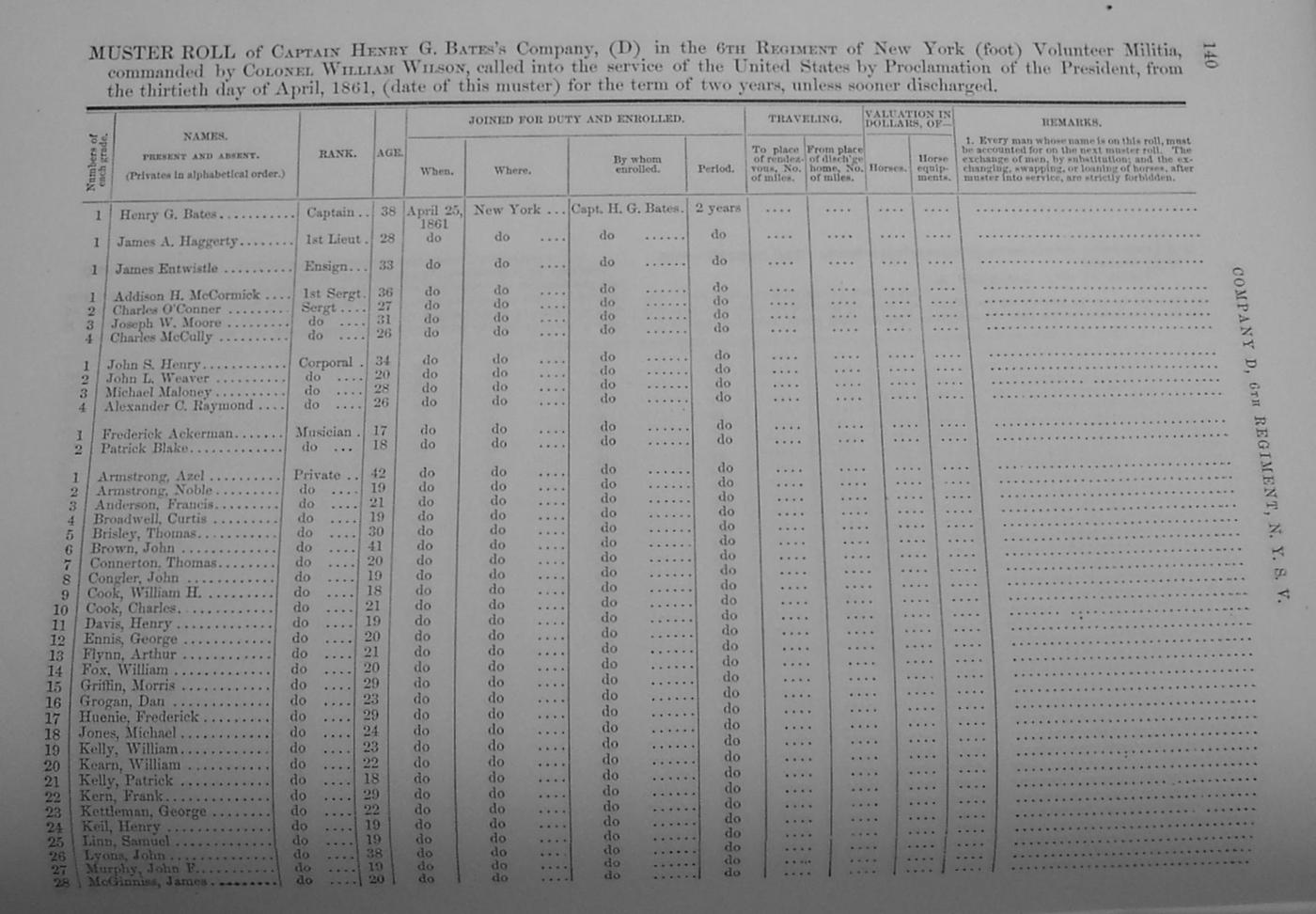 - Company D - Captain Henry G. Bates - Page [ 1 ] [ 2 ]