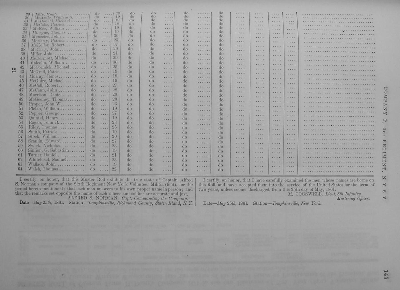 - Company F - Captain Alfred S. Norman - Page [ 1 ] [ 2 ]