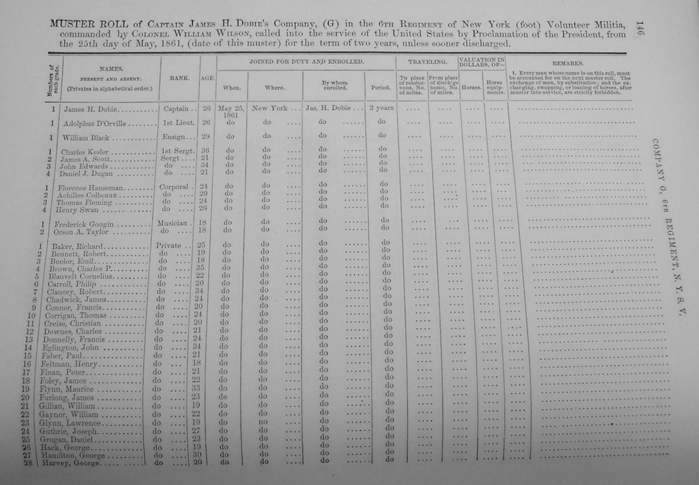 - Company G - Captain James H. Dobie - Page [ 1 ] [ 2 ]