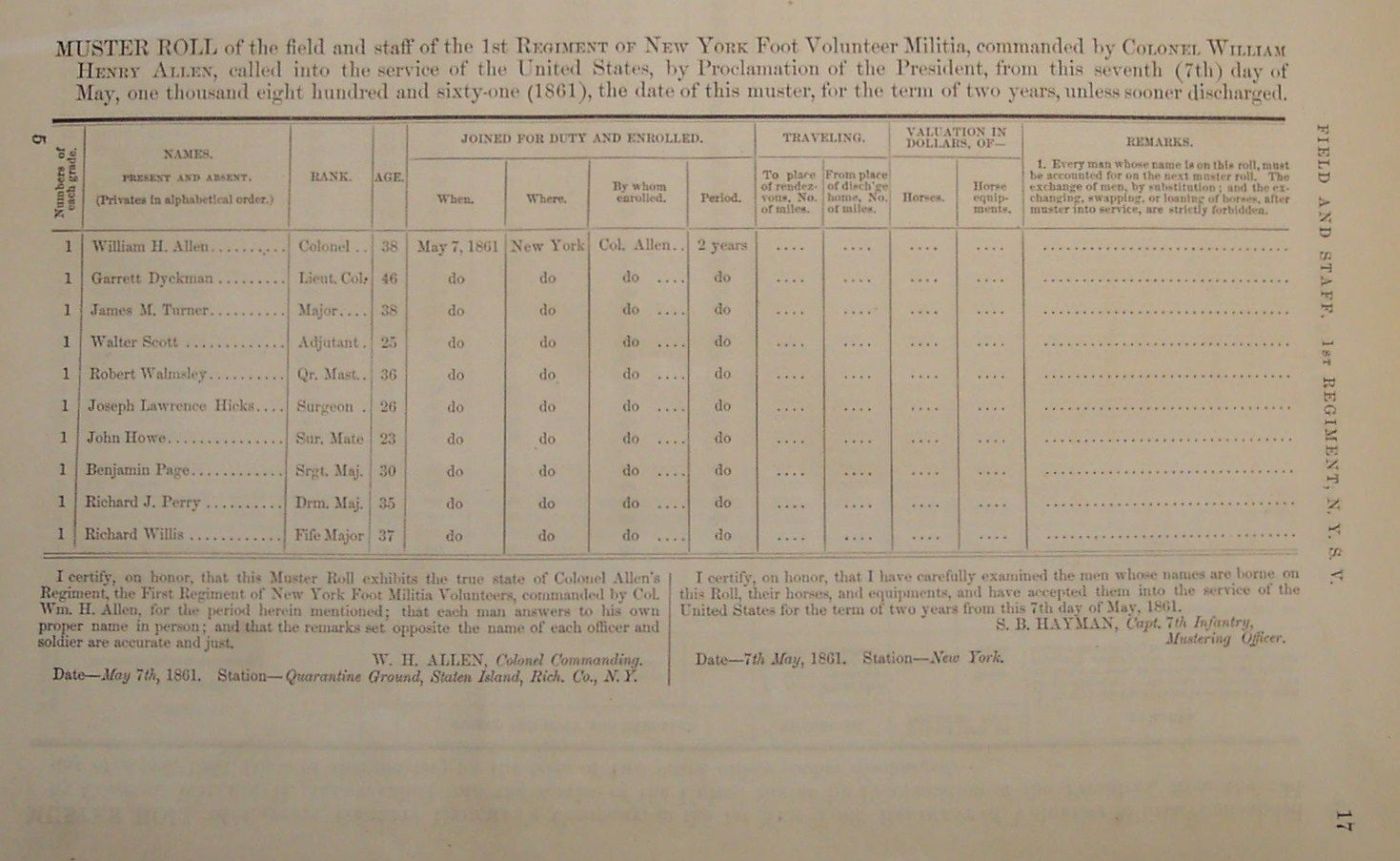 1st Regiment of New York Foot Volunteer Militia - Colonel William Henry Allen