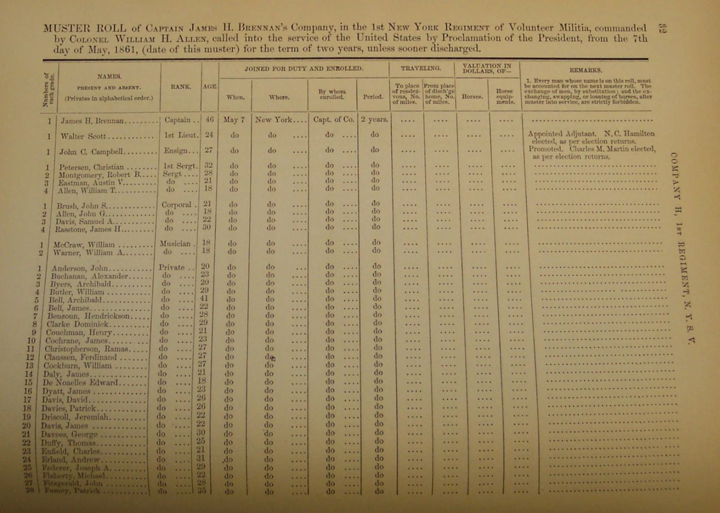- Company H - Captain James H. Brennan - Page [ 1 ] [ 2 ]